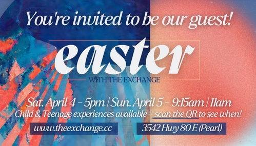 At Easter with The Exchange, we celebrate the moment history turned—when Jesus gave His life and rose again so we could have forgiveness, freedom, and hope. Easter isn’t just a holiday. It’s the story of God who loves you enough to come close.