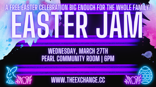 We'll be at The Pearl Community Room on Wednesday, March 27th at 6 pm for Easter Jam. Stop by and join the fun!!