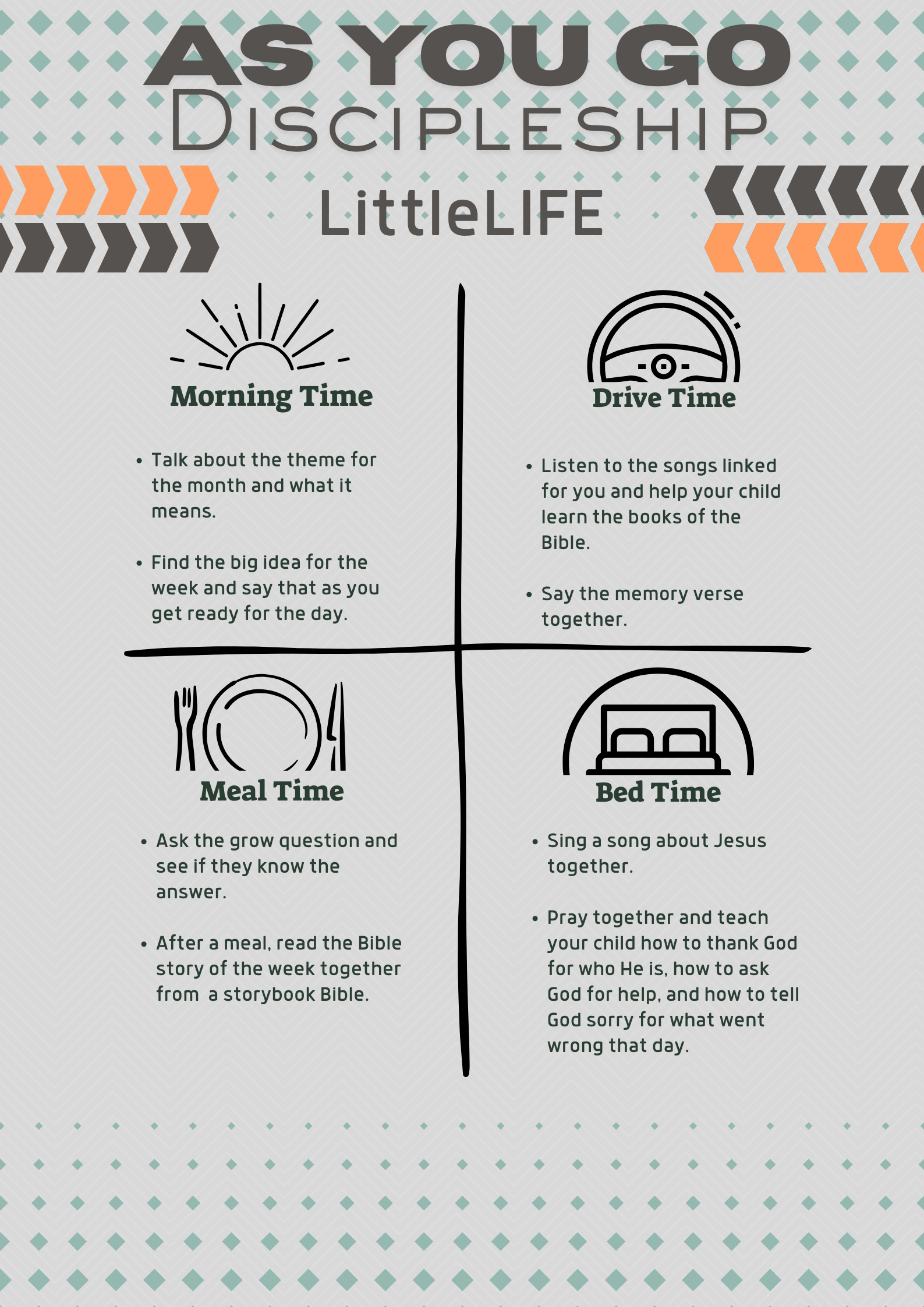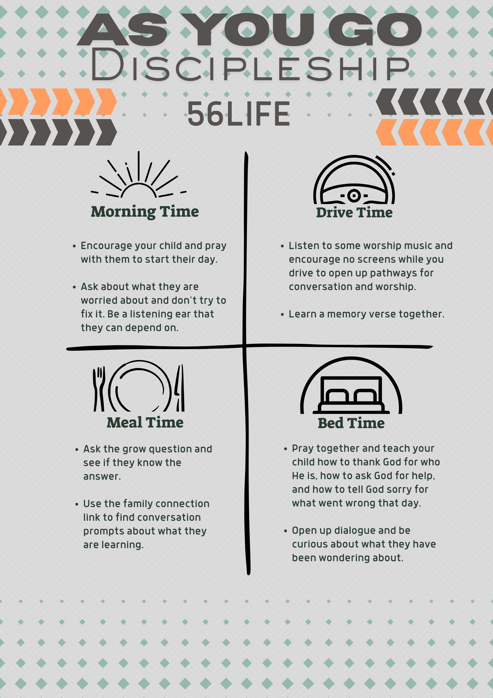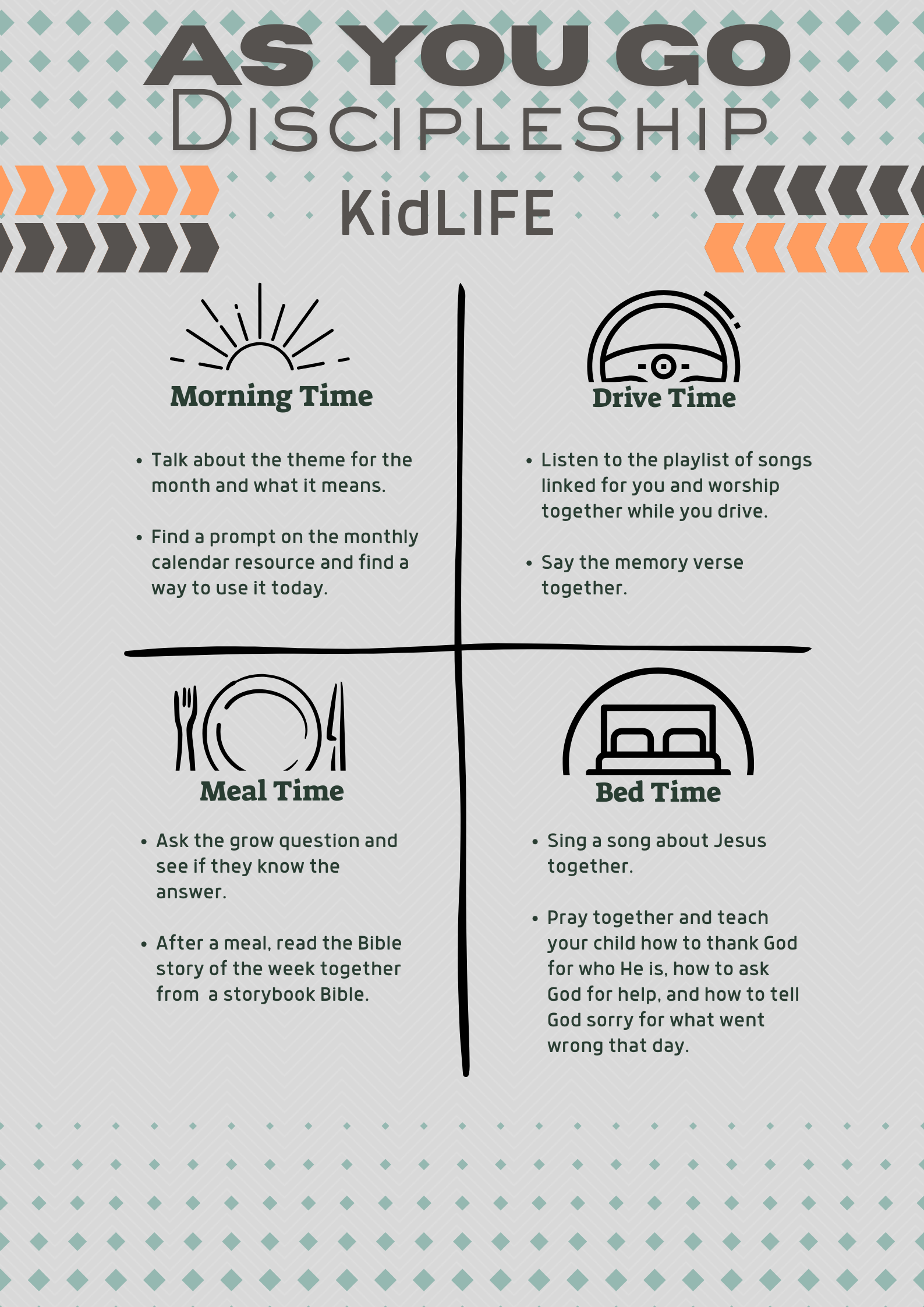 The term "as you go" means you can use your everyday rhythms as cues to be intentional about discipling your kids.
